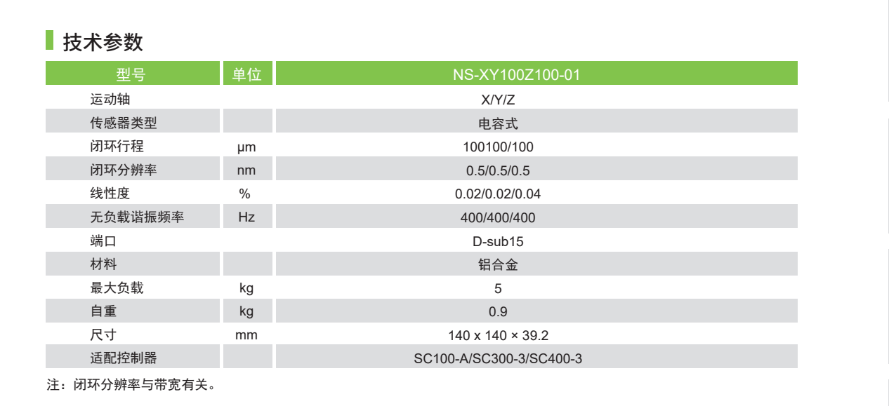 NS-XY100Z100-01是一款高精度大負載三維納米定位平臺,負載可達 5kg。閉環(huán)行程可達100/100/100μm,閉環(huán)分辨率 0.5/0.5/0.5nm。